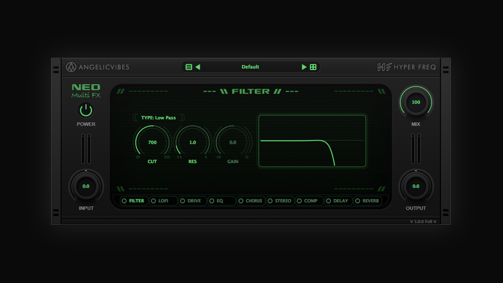 Neo carries a variety filter types, overdrive options, parallel delay units, a 3-band equalizer, stereo separation, optimized reverb effect, punchy compression and many more parameters to enhanced your sound and bring it to life.